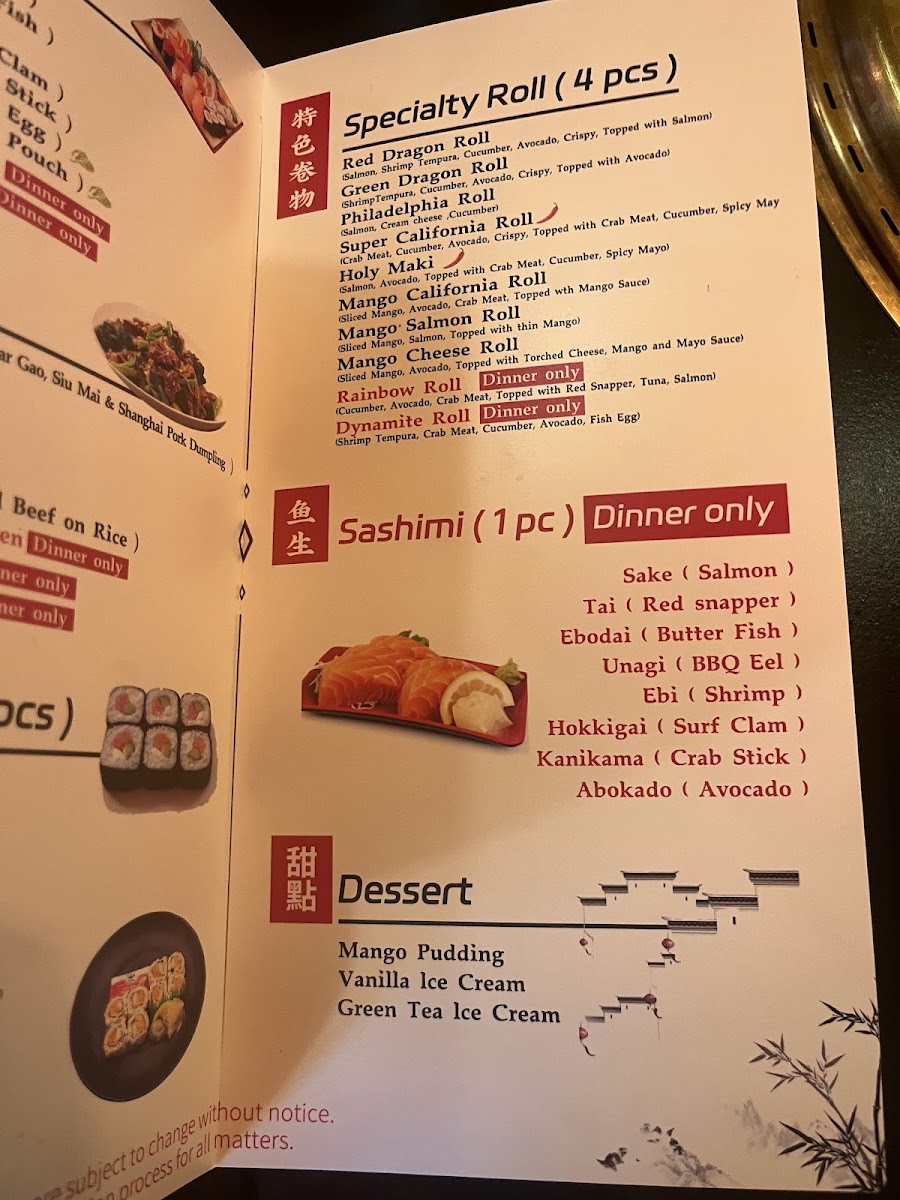 Appetizers like garden salad, miso soup, and tantalizing wonton soup prepare your palate for the main event. Enjoy a variety of freshly prepared sushi and BBQ options, ensuring there's something for every taste bud. The experience is complemented by flavor-packed side dishes and delightful desserts, including mango pudding and green tea ice cream.